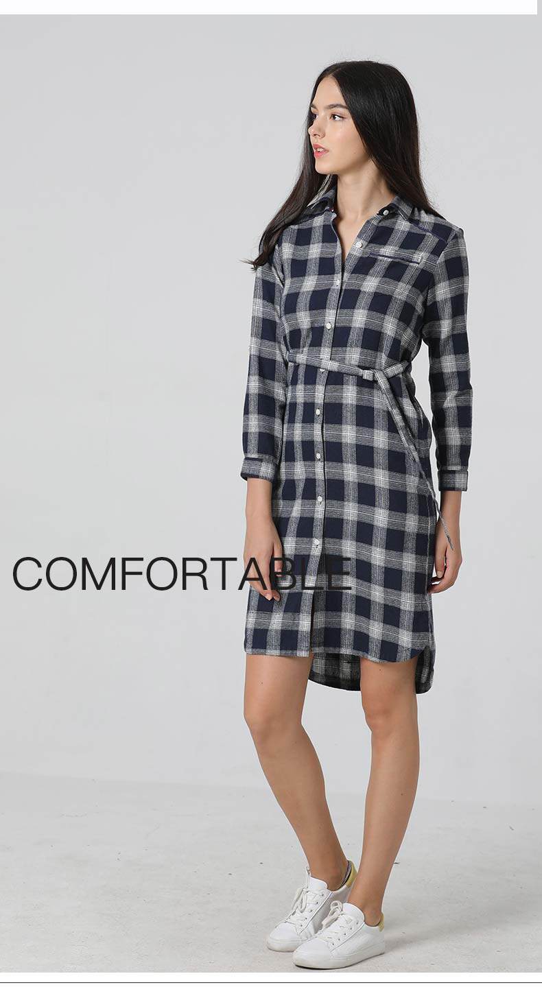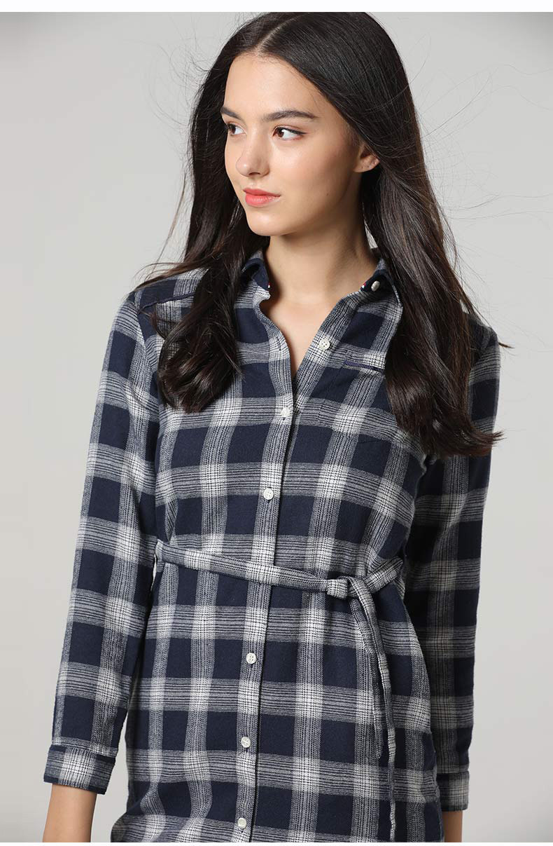 波顿/Boton2018年新款女士秋冬季纯棉磨毛格子长袖衬衫英伦