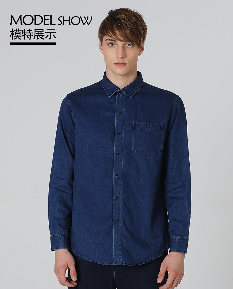 波顿/Boton长袖牛仔蓝色衬衫牛仔布春秋早秋款青年休闲美式英伦风