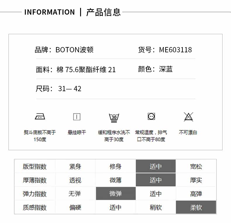 波顿/Boton男经典牛仔裤桑蚕丝斜袋宽松透气