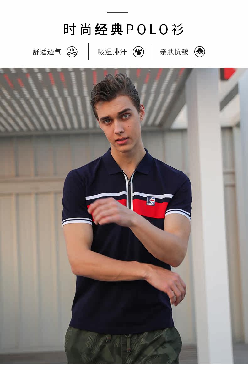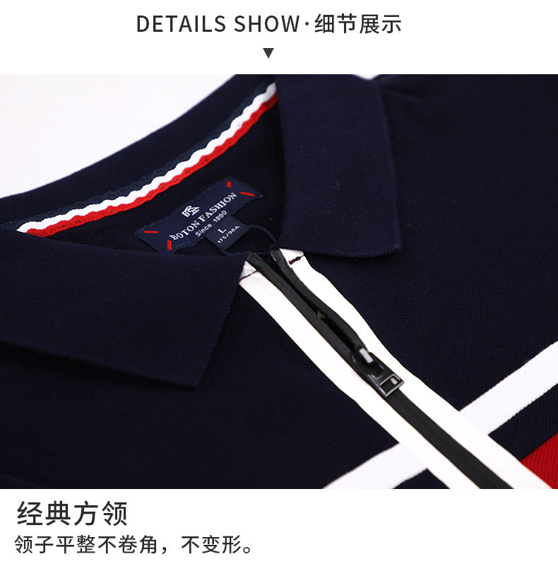 波顿/Boton夏季中年条纹透气polo衫男式短袖T恤薄款纯棉翻领上衣