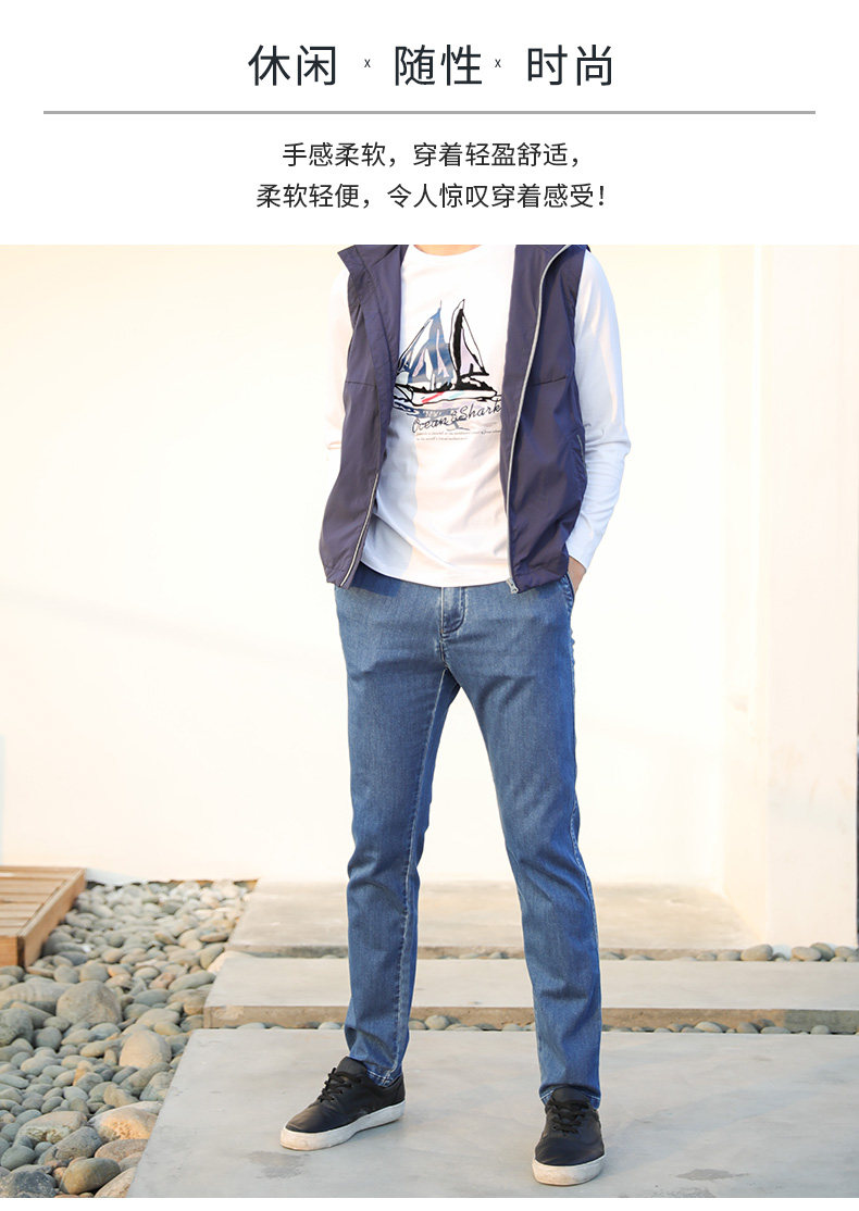 波顿/Boton2108夏季新款中青年斜袋透气柔软牛仔裤弹力直筒长裤子