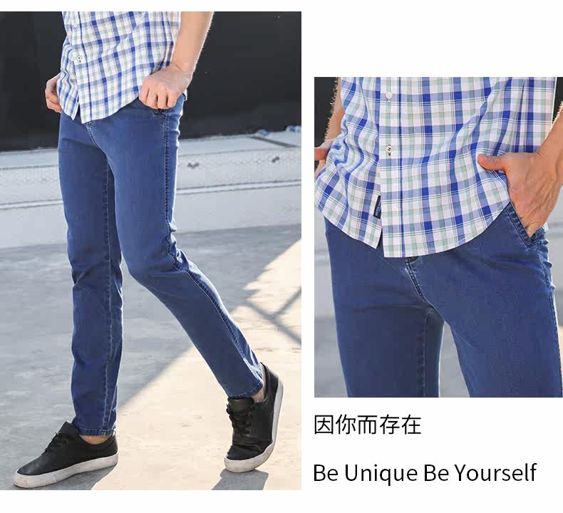 波顿/Boton2018新款青年早秋季棉质透气直筒休闲斜袋牛仔裤