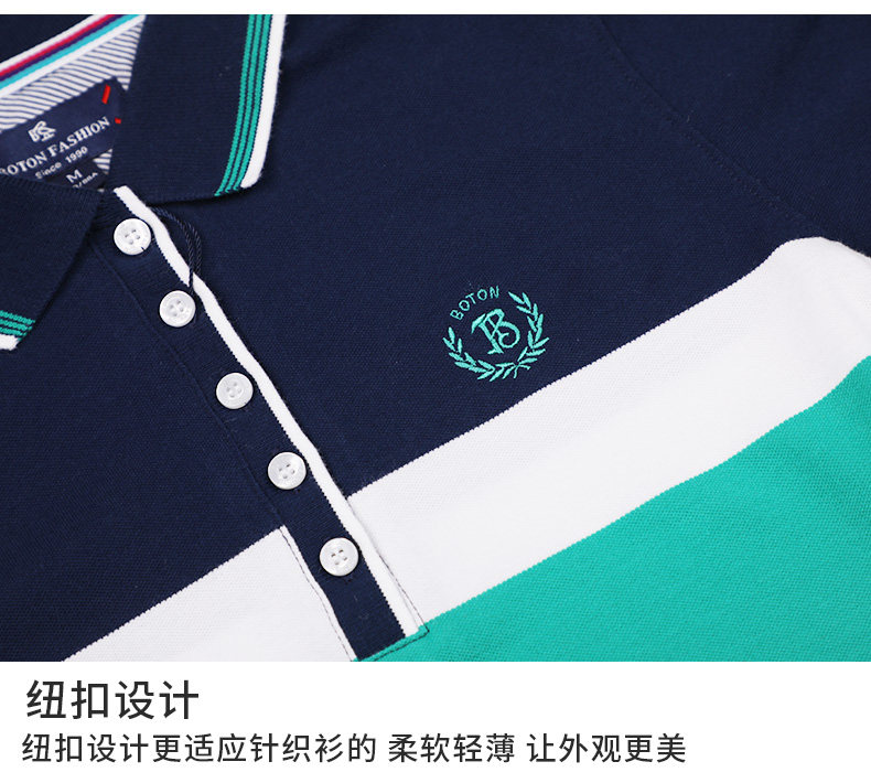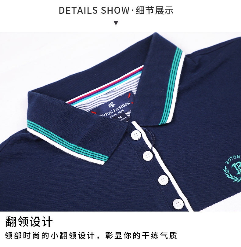 波顿/Boton2018新款夏季翻领拼色POLO连衣裙修腰修身短裙