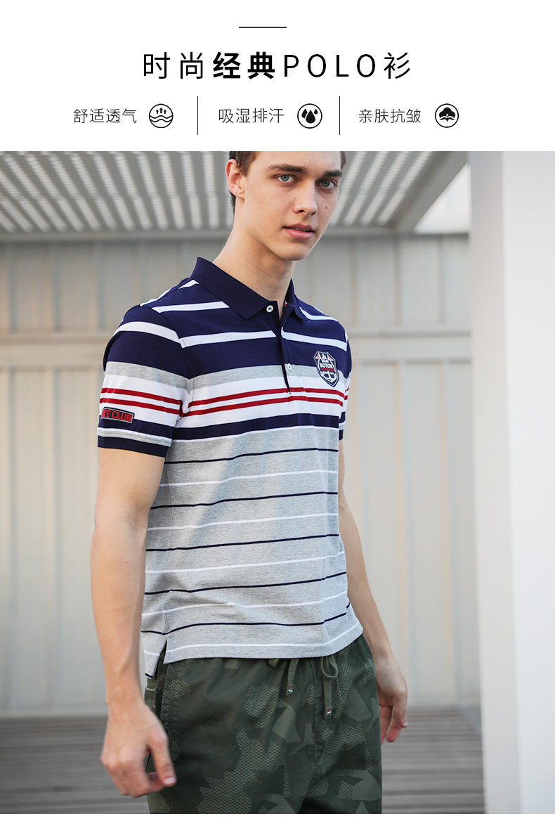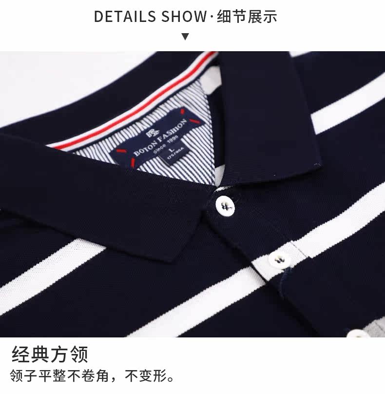 波顿/Boton2018新款中年条纹透气polo衫男士棉质翻领短袖宽松T恤