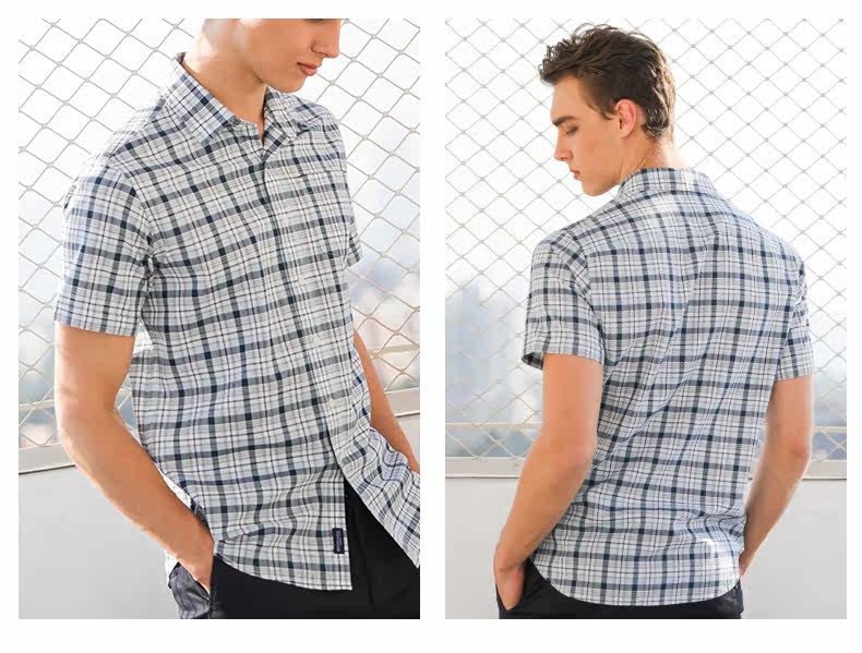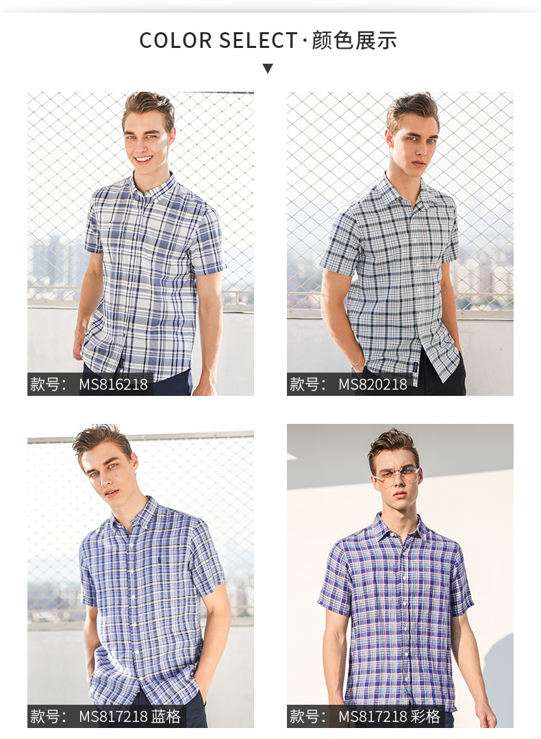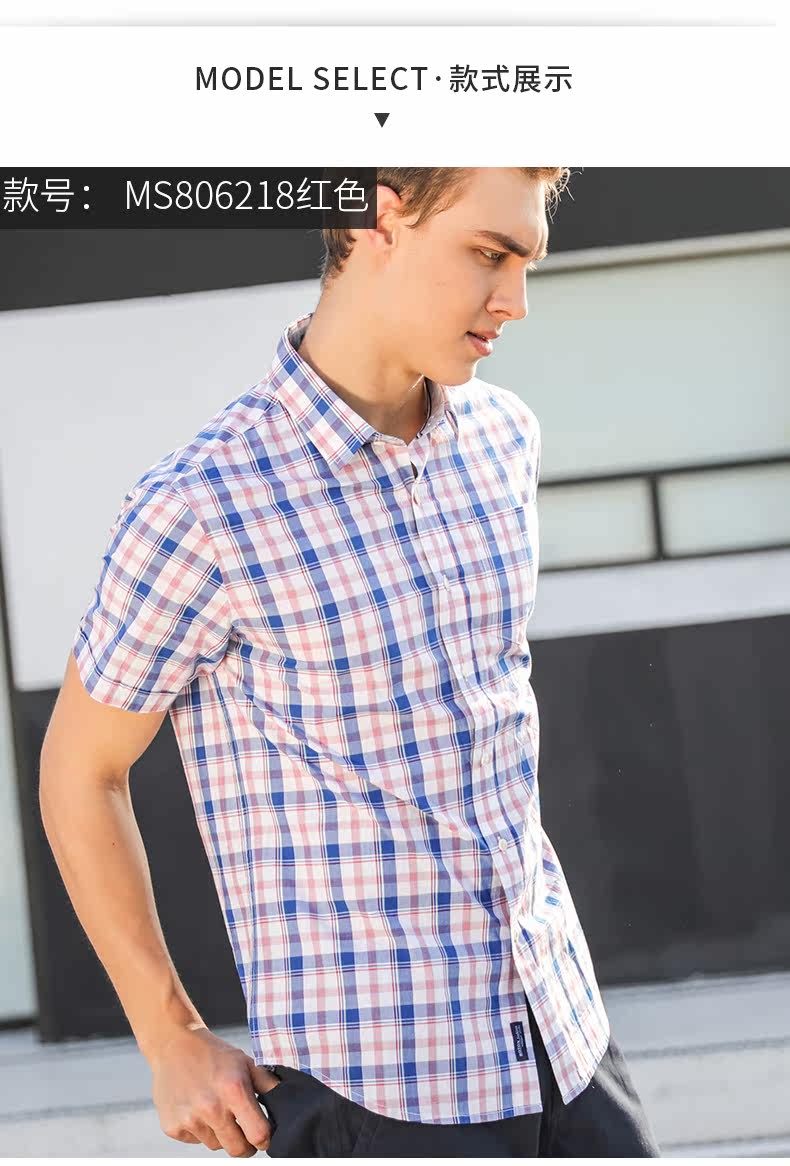 波顿/Boton2018彩虹格子衬衫夏装男士短袖休闲彩色纯棉薄款英伦风
