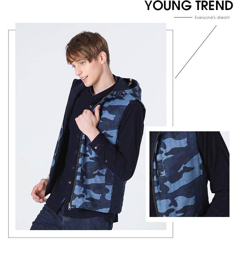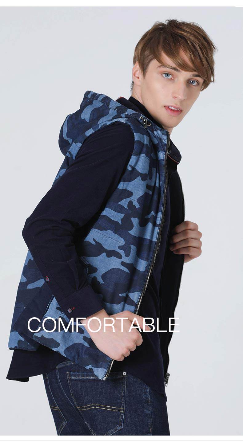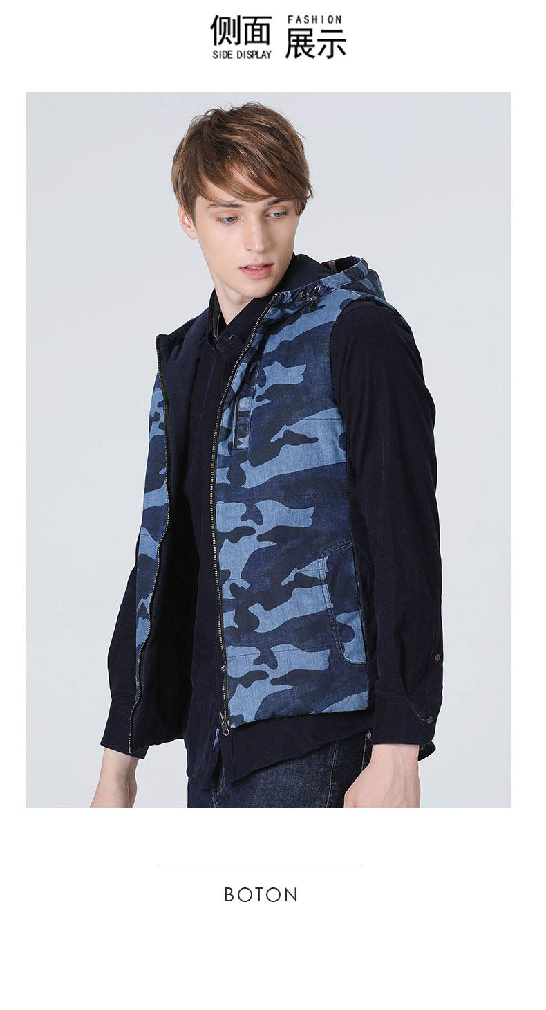 波顿/BOTON 2018年新款男士两穿深蓝迷彩马夹休闲男士马夹
