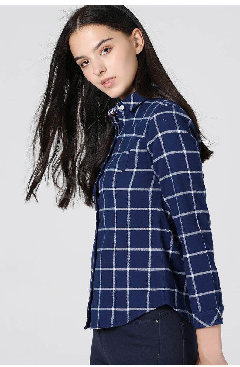 Boton/波顿2018年新款秋冬女磨毛衬衫休闲深蓝格修身女衬衫