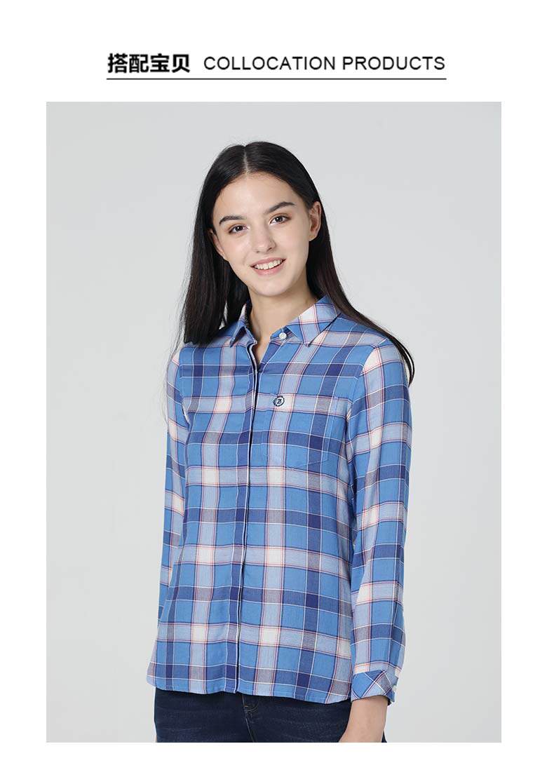 Boton/波顿2018年新款秋冬女磨毛衬衫休闲深蓝格修身女衬衫